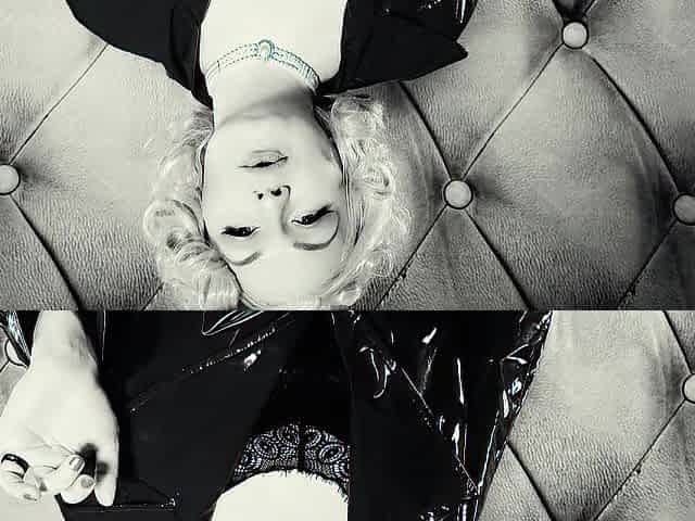 Golden-haired in red underware masturbates snatch and rope on neck and S&M