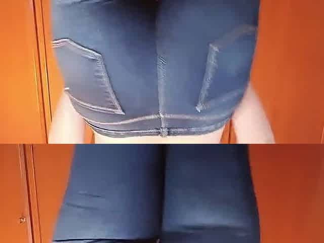Large overweight consummate booty walking in blue jeans and showing it off