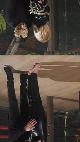 Bondage seance with submissive Olivia in catsuit