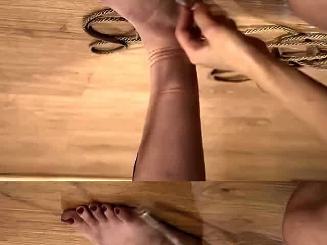 Bondage session with leather ropes and sex doll Zowie by Samurai Dolls