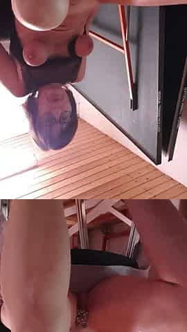 Pussy Hook Partial Aoh Suspension with Clover Nipple Clamp Predicament Bondage with Electro & Whipping