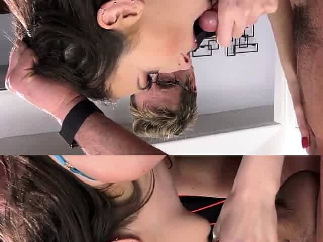 Sperma auf ihrem Bauch Harter BDSM-Blowjob mit einer umwerf