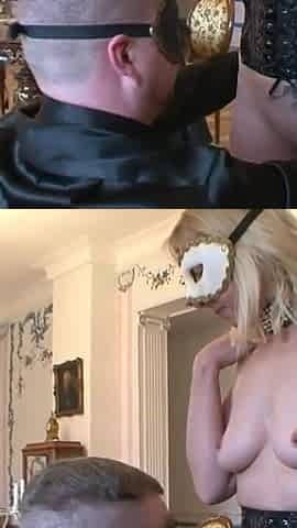 The blond woman humiliates and spanks on the masked guy