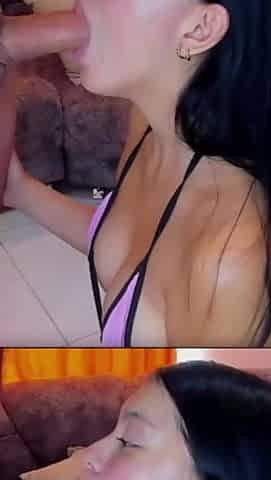 Amatuer Brunette Hot Blowjob Ball Lick Facial