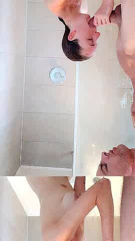 Semen en la boca, hot brunette, double blowjob pov