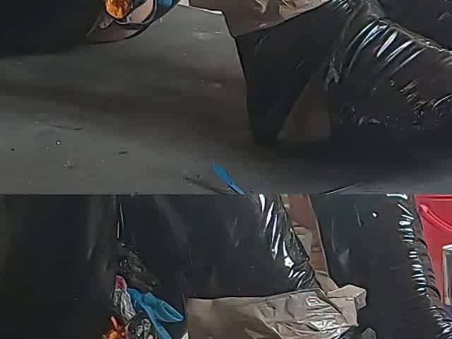 PEGGING in jumpsuit & hot high latex boots - two cumshots in a row