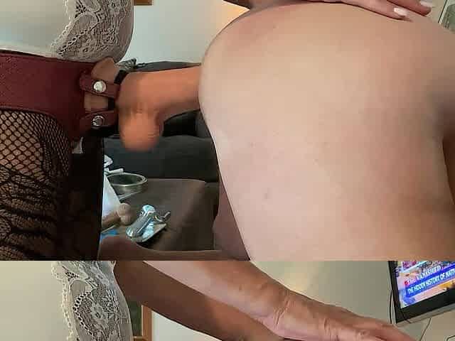 Pegging his booty with my belt-on balls -whilst this guy's shackled