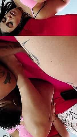 two women fetish latex asslicking and anal mff