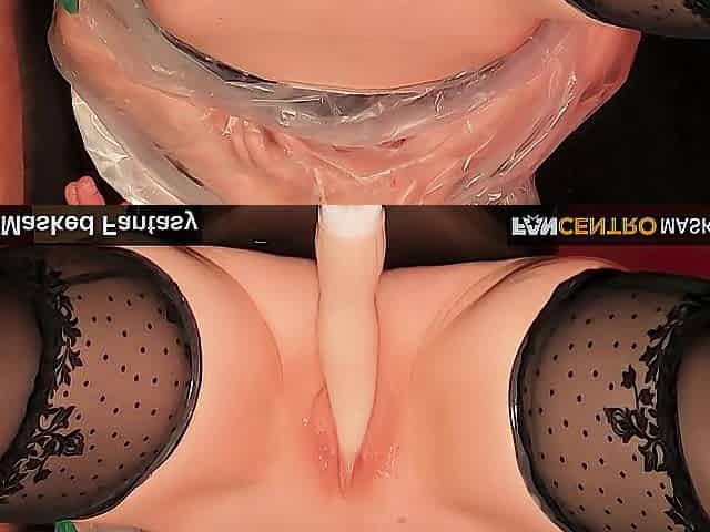 Bound whore is wrapped in plastic and obliged to triple orgasm