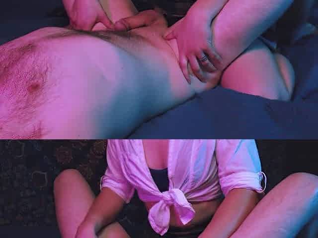 Amateur pair - tugjob, sex, prostate ejaculation. Chunky male and slim short hair blond beauty.