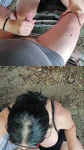 outdoor rimjob and sucking by whore milf wife