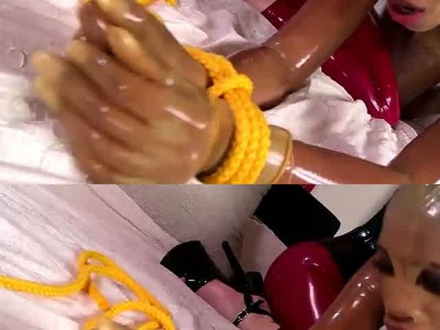 Pervert Latex Nurse Enjoy Her Sadistic Fantasies with Her Tied up Submissive Patient.