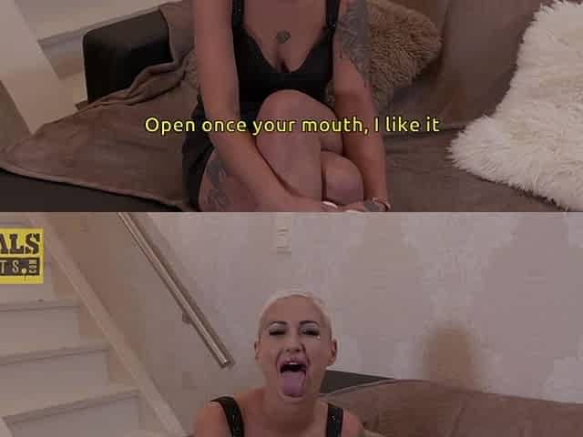 Mouth fucked sub gal eagerly eats dick