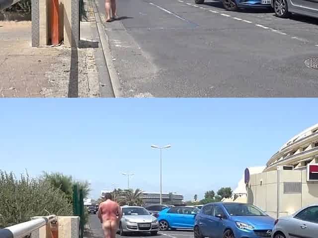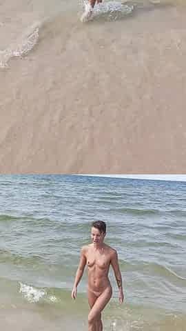 Tiny golden-haired European cougar gets exposed at the beach and discloses her hot bare body