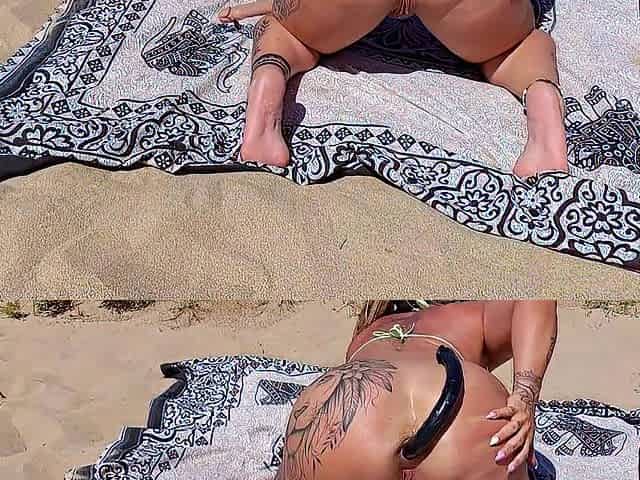 Public Beach Masturbation and Orgasms for Tattooed Amateur M