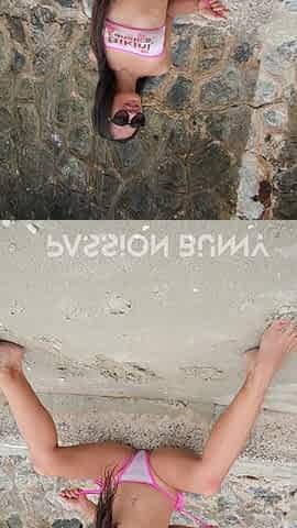 Hot Brazilian bathing suit stunner on the beach, giving oral jobs and doggystyle smashes with giant jizz-shotgun and ample ass.