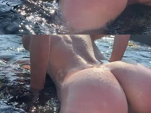 We Got Caught! My Teacher Handjobs My Cock Underwater on Nude Beach Public Sex