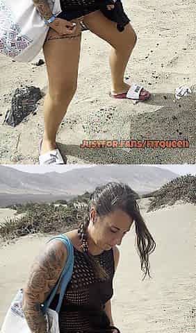 Nice-looking chunky cunt piddle on the beach