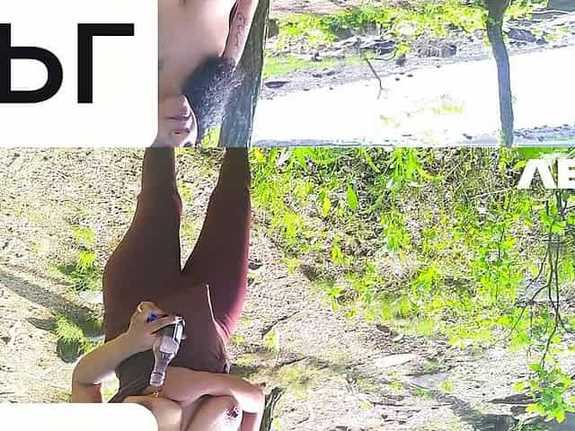 Fantastic chick with phat orbs does a fellatio outdoors in-!