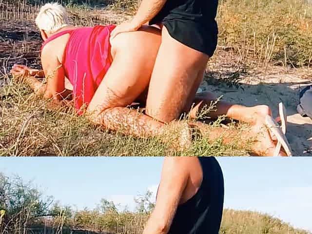 On the Beach, Several Cumshots That My Stepson Gave Me with His Big Cock, He Wants Anal Sex