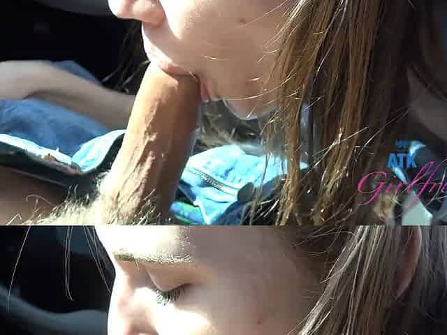 Public Car Sex with Rose Carter on a trip to the beach sucking cock and riding it hard POV