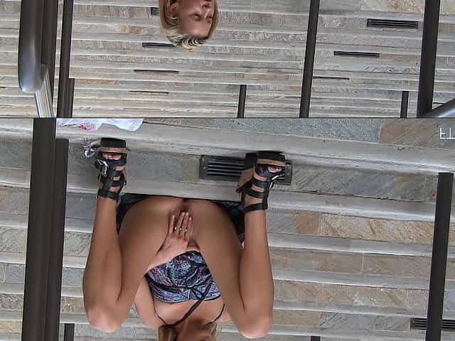 Up Yellow Dress No Panties In Public # Bull Plug Flash At The Beach