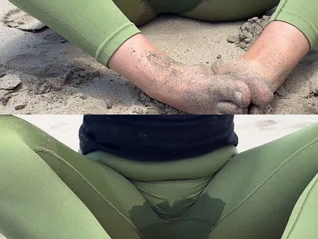 Public beach babe wets her pants and delivers a steamy blowjob