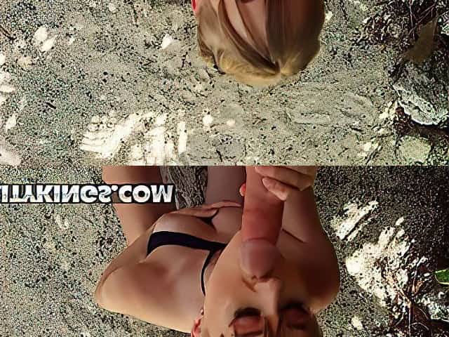Nice girlfriend with plump ass Eva Elfie gives a blowjob and gets fucked on the beach