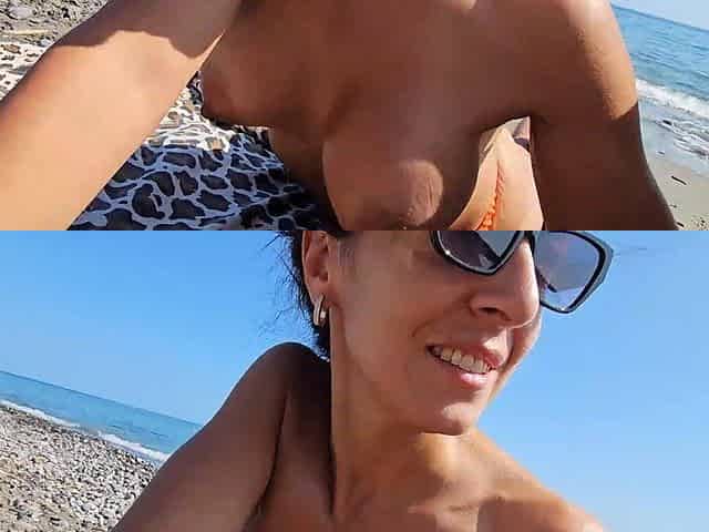Lover Touches Me on the Beach While My Husband Is Not Looking