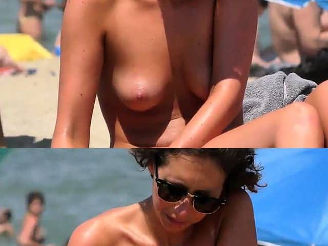 Lovely brunette lass Topless Beach Voyeur Public Nude