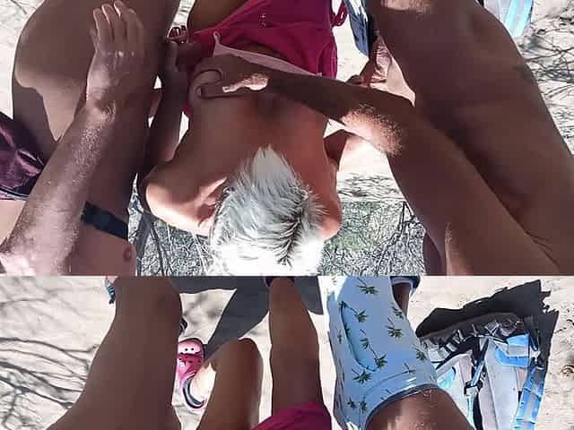 Hard Group Sex On A Beach. Fucked A Bitch In Three Dicks