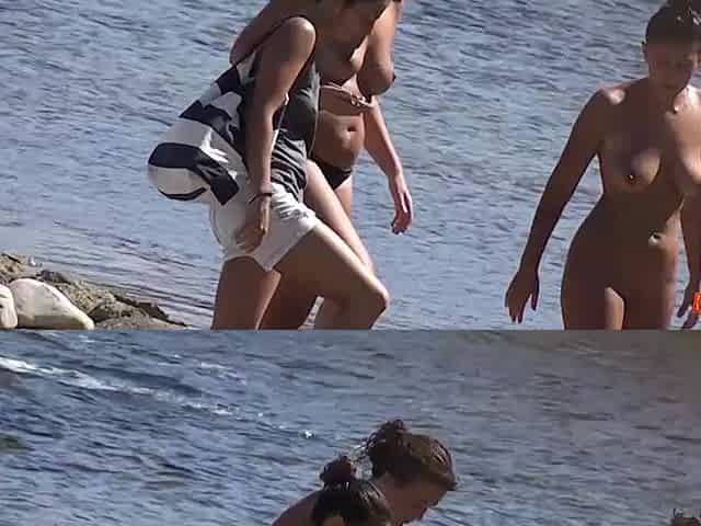 Three nude bitches on a beach lying down sitting walking voyur porn