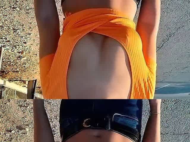 Golden shower for Katty on the public beach
