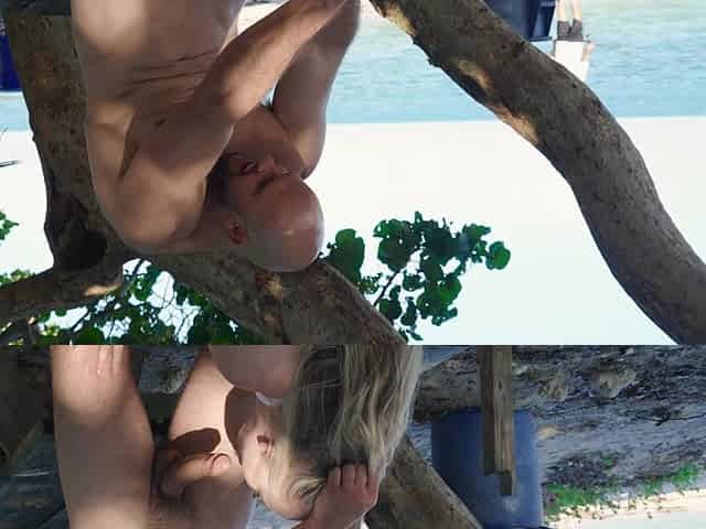 African beach babe sucking big dick