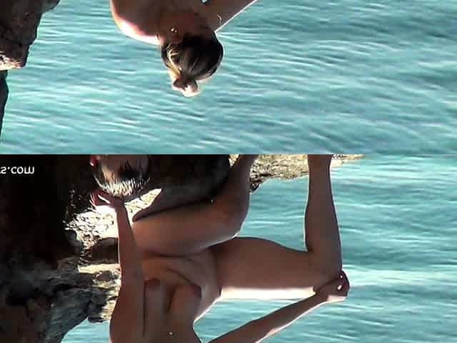 Girl Giving sensual handjob at a nudist beach