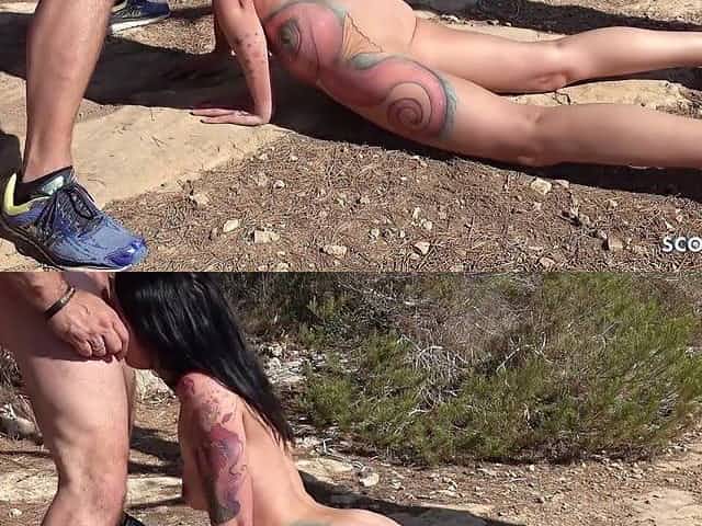 Bosomy gorgeous MILF Patty Michova gives steamy BJ to brutal stud on sandy beach