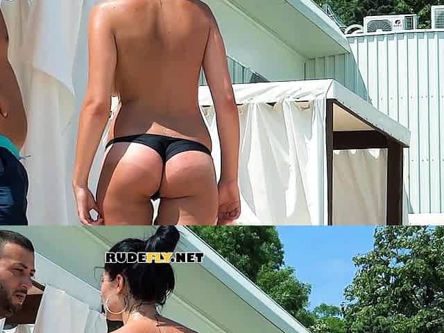 Topless Beach Woman with Natural Large Boos Candid Voyeur Movie