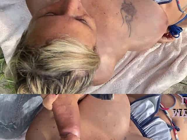 Blow Job at the Beach Aged Wife Performs Oral