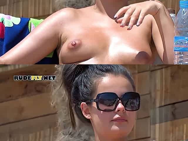 Amateur lesbian flashing on the beach