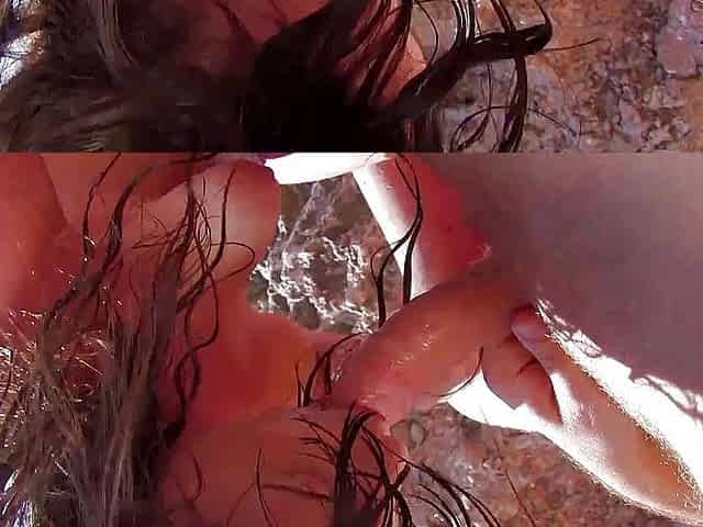 Sloppy beach facial for small tits brunette Erika Wolf