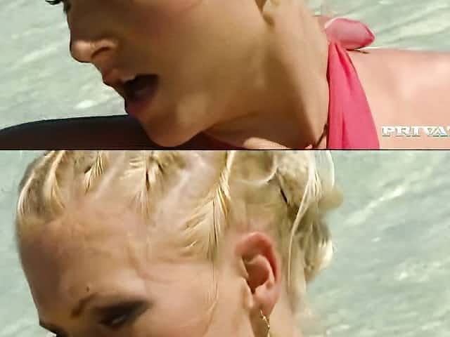 Sexy beach hotties in bikinis enjoy hot orgy fuck party