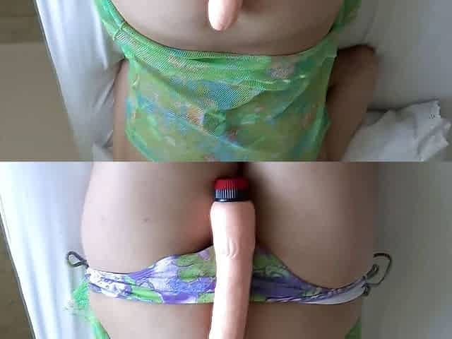 My wife on the beach enjoys her huge dildo before fucking her step-nephew
