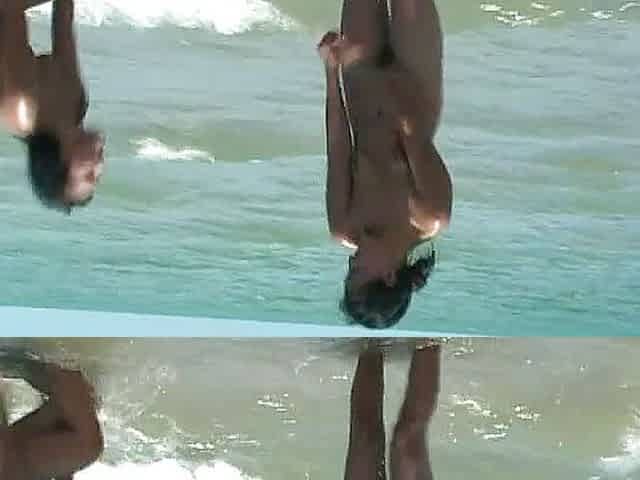 Step mom fucking on a nuduistic beach with stepson while husband swims