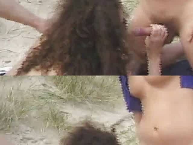 Lovely whore sucks two cocks on the beach