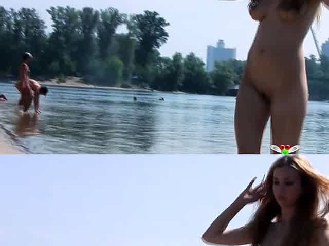Nude Girl Public Beach. Walking And Swimming. Small Tits