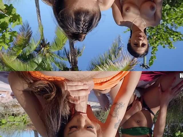 Outdoor fucking on the beach with Sofie Reyez and Serena Santos