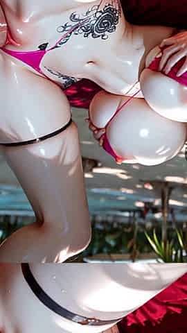 Foursome on a nudist beach with 3 Breasty Blondes with Red Bikini - AI Generation Anal