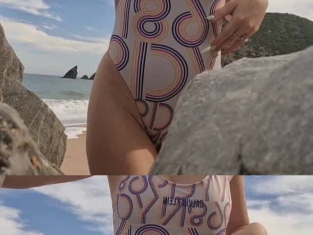 Beautiful and hot big-tailed blonde moaning and cumming, giving her pussy and spitting on the beach to Leo: Porn