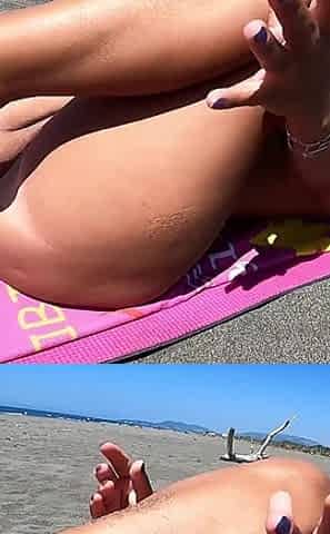 Outdoor handjob on beach with cumshot