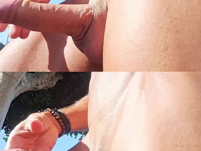 Jizz flow in paradise - Hawt stud bare in a public beach